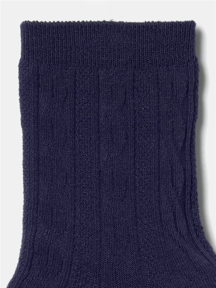 カシミヤ混直角ヒール折り返し縄柄ソックス13cm丈
