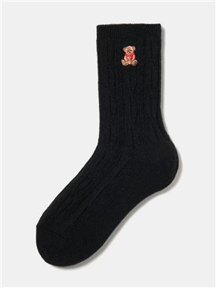 アニマルワッペン刺繍内側ボアルームソックス15cm丈