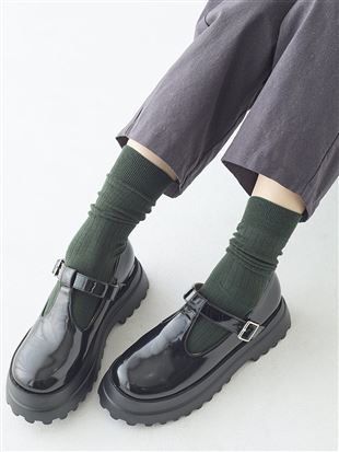 シルク混履き口ゆったりリブ平無地ソックス15cm丈