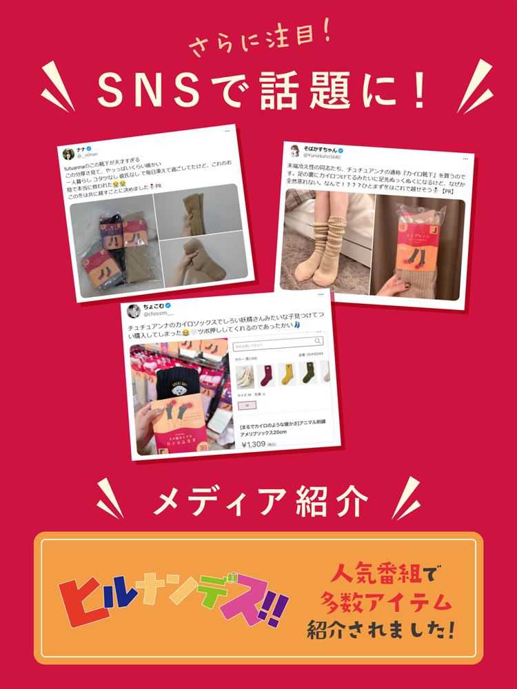 tutuannaオリジナルの商品を扱っている公式通販サイトです。 こちらのページは、[まるでカイロのような暖かさ]無地アメリブソックス20cm丈というレッグウェアの商品詳細ページです。 他にも、多数のレッグウェアに関する商品を扱っています。