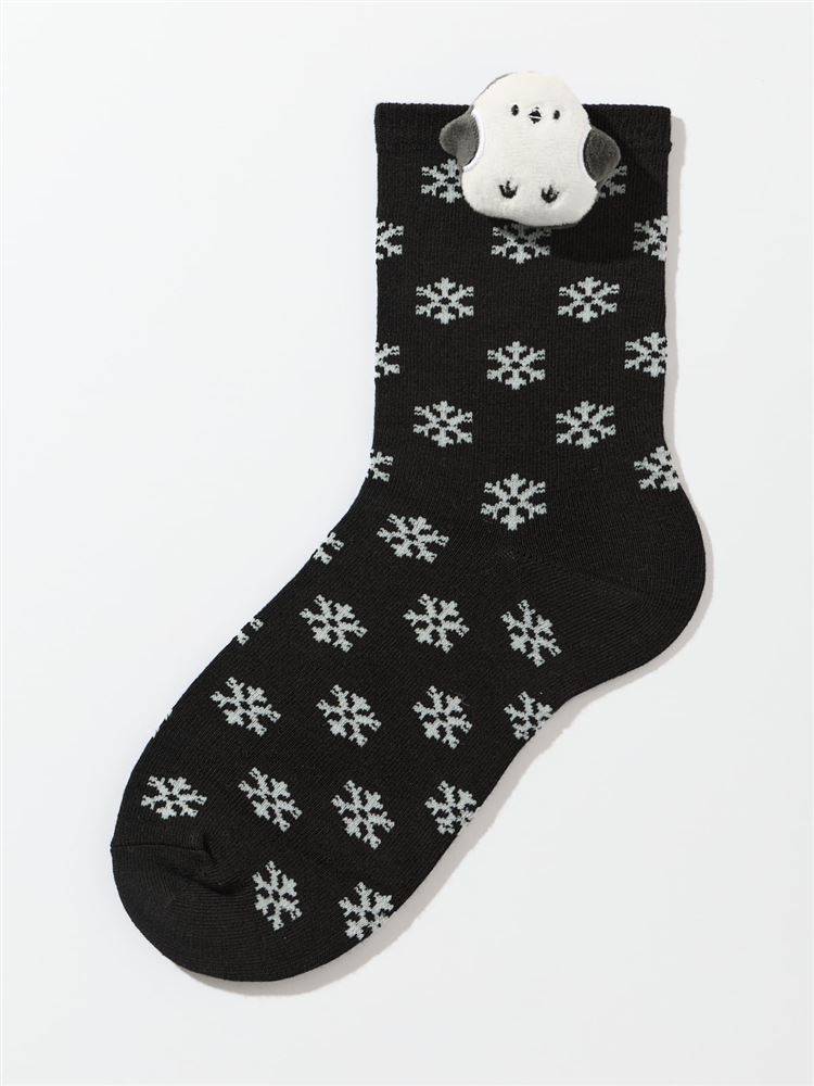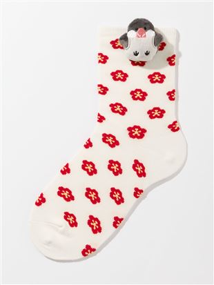 アニマルワッペン刺繍内側ボアルームソックス15cm丈