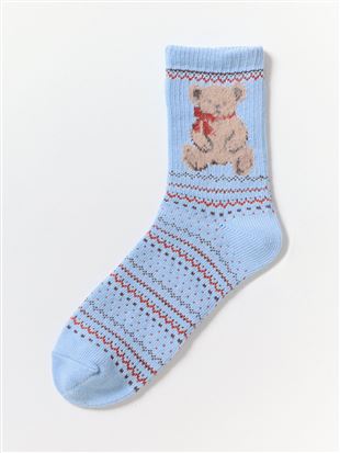 アニマル刺繍内側ボアルームソックス15cm丈