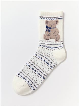 綿混アニマル刺繍リブソックス15cm丈