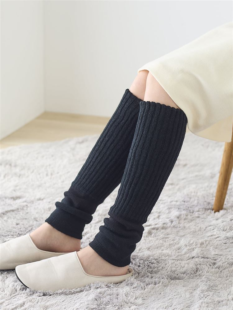 [まるでカイロのような暖かさ]無地リブレッグウォーマー40cm丈