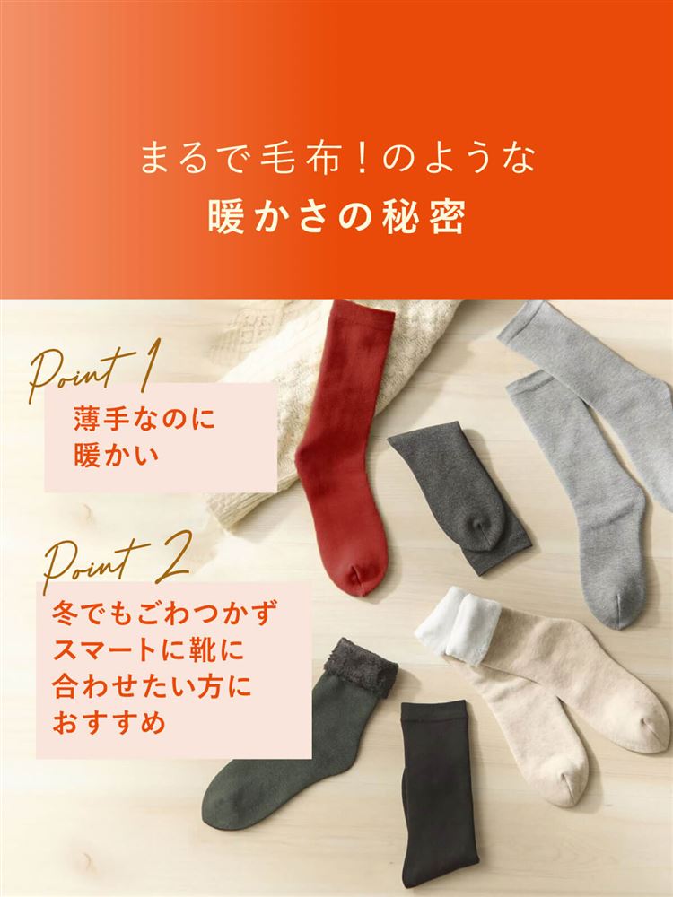 [まるで毛布!のような暖かさ・薄手]平無地くるぶしソックス