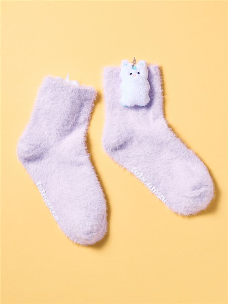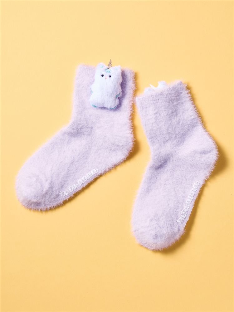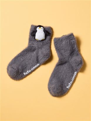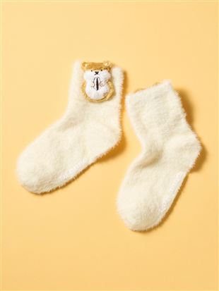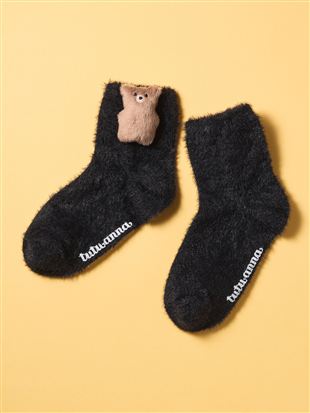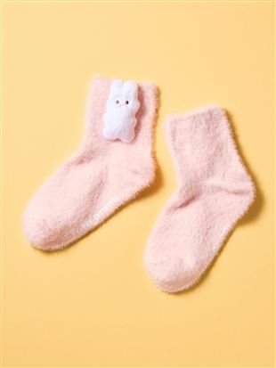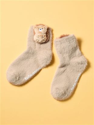 ふさふさゆるアニマルマスコット付きソックス14cm丈