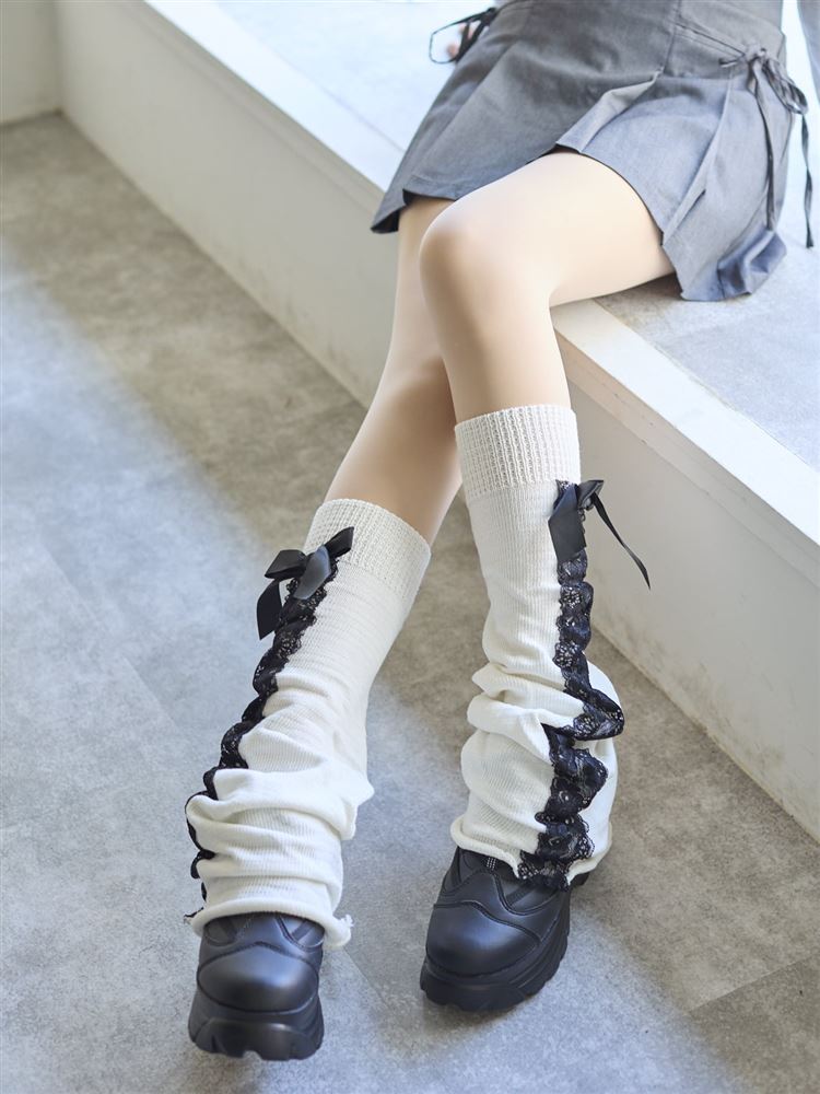 まるで素肌のようなフェイクタイツ80デニール(ドット×リボン柄)