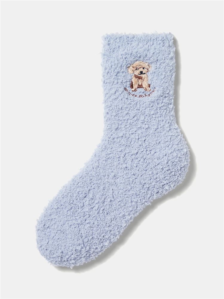 マフラーくまワッペン刺繍モールソックス15cm丈