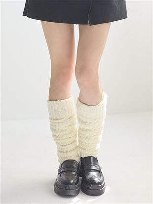 [まるで毛布!のような暖かさ・厚手]あぜ編み裏起毛レッグウォーマー45cm丈