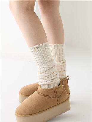 綿混リボン付きサイドメローレッグウォーマー50cm丈