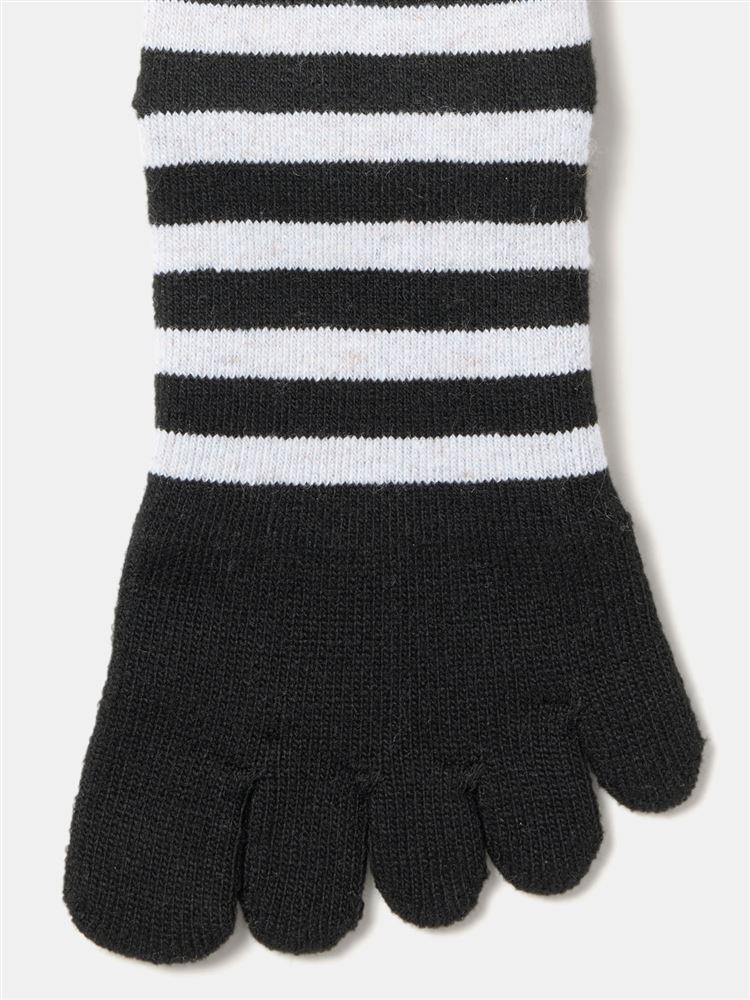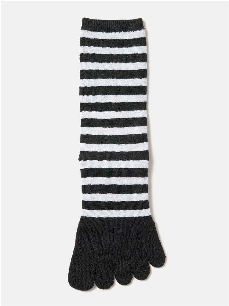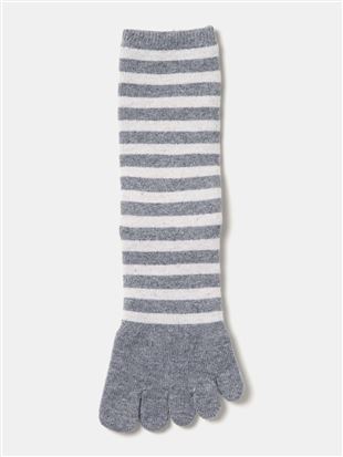 [まるで毛布!のような暖かさ・厚手]ボーダー柄5本指ソックス21cm丈