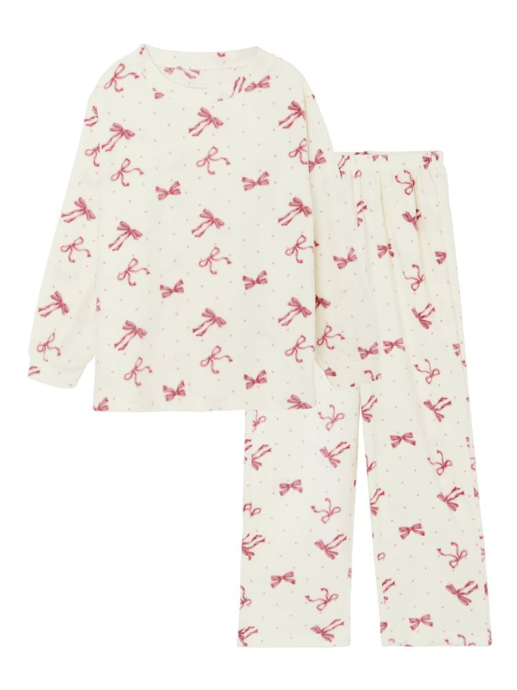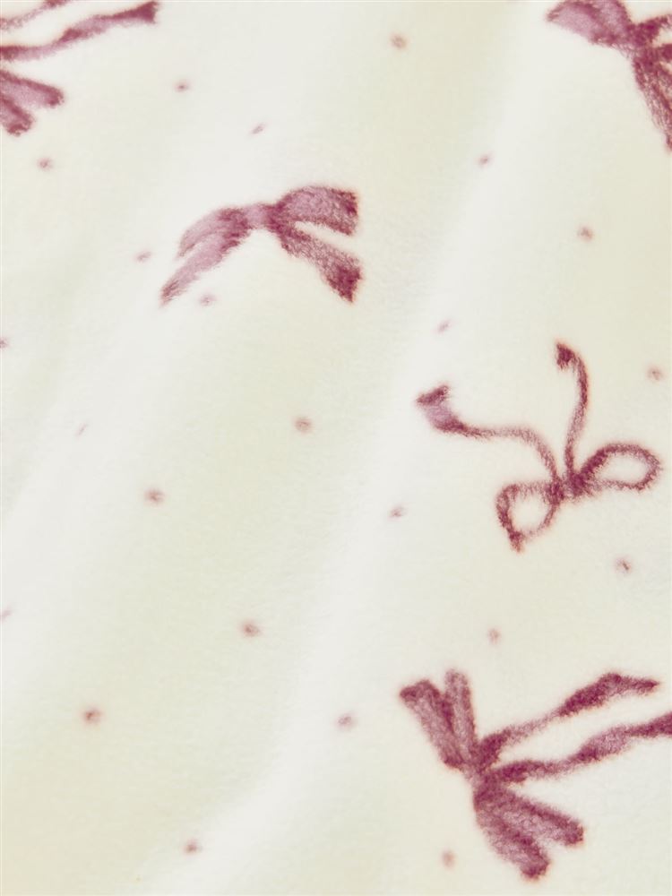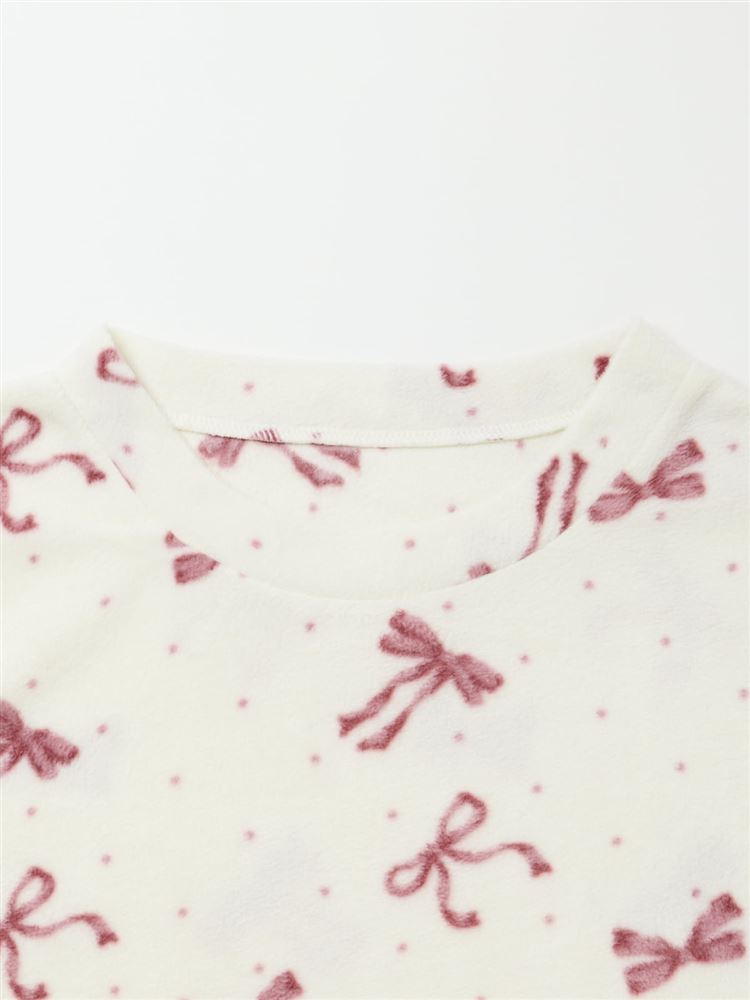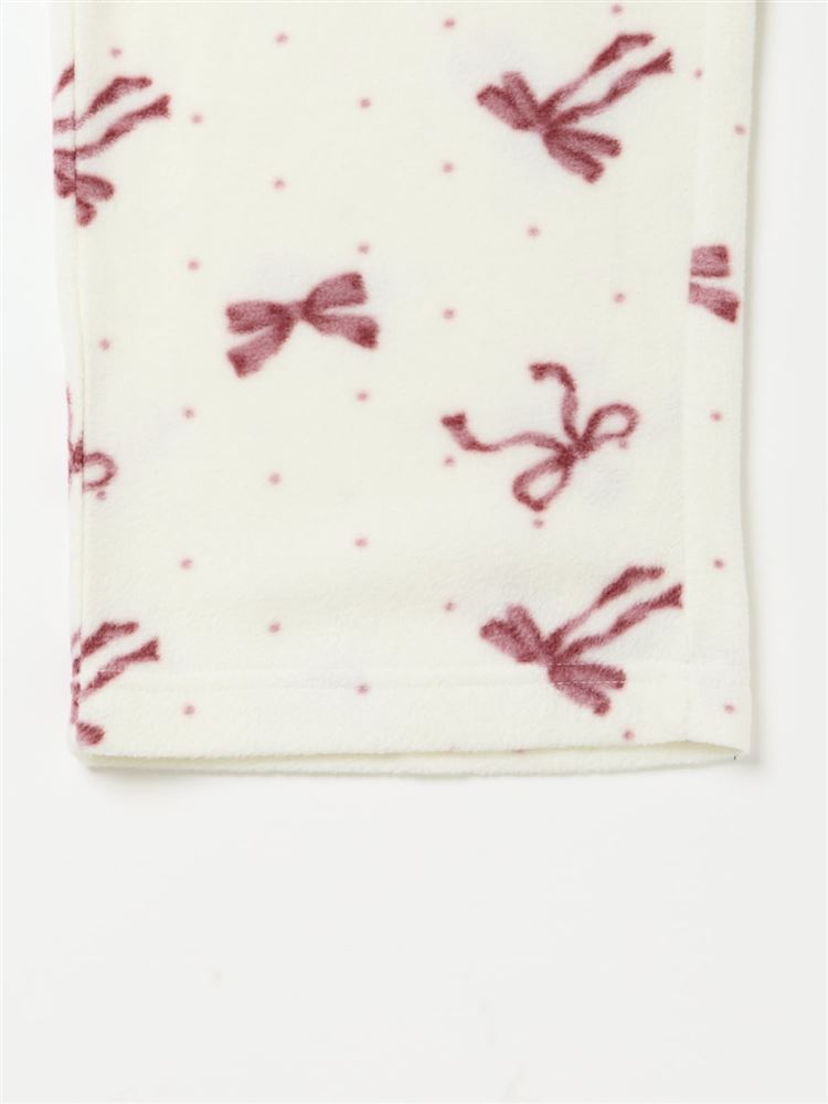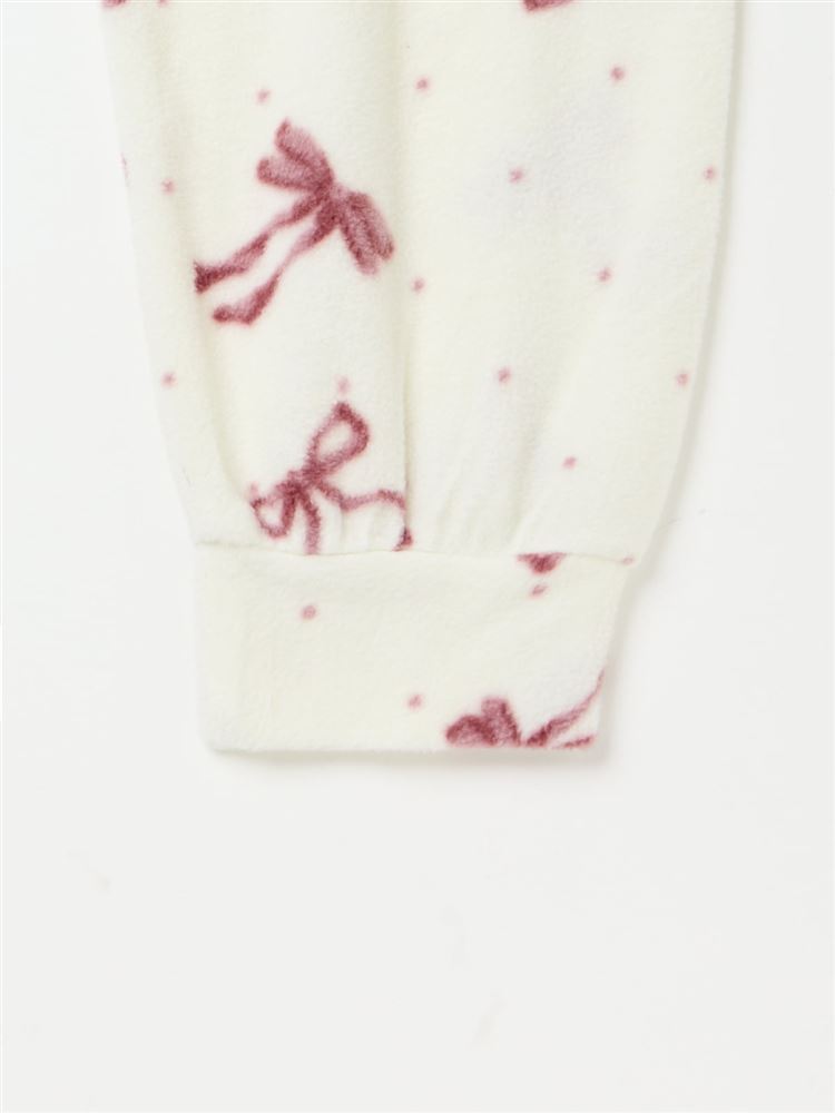こちらのページは、リボン総柄フリースパジャマというルームウェア(部屋着)の商品詳細ページです。
