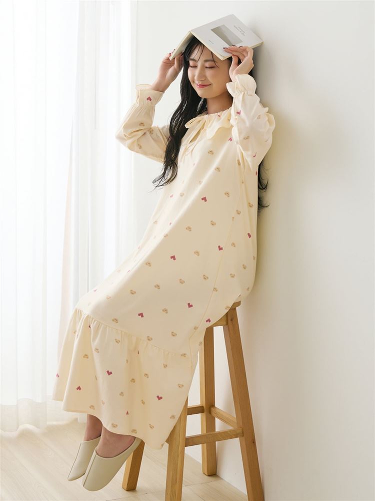 こちらのページは、綿100% くま柄フランネルワンピースというルームウェア(部屋着)の商品詳細ページです。