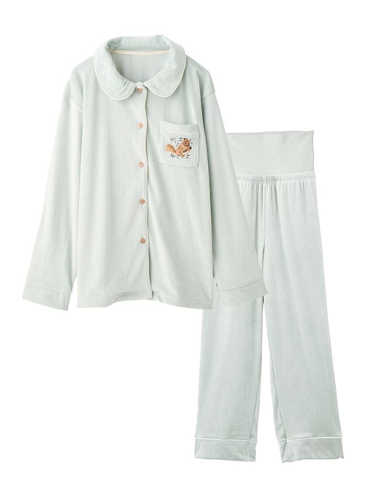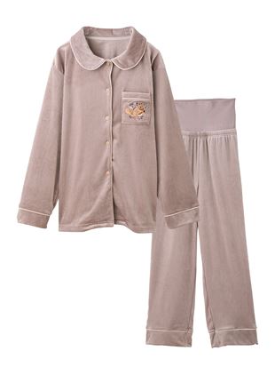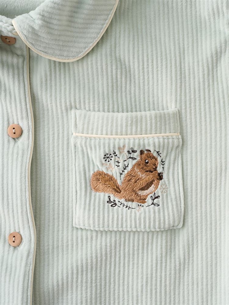 こちらのページは、腹巻き付きリス刺繍前開きベロアパジャマというルームウェア(部屋着)の商品詳細ページです。