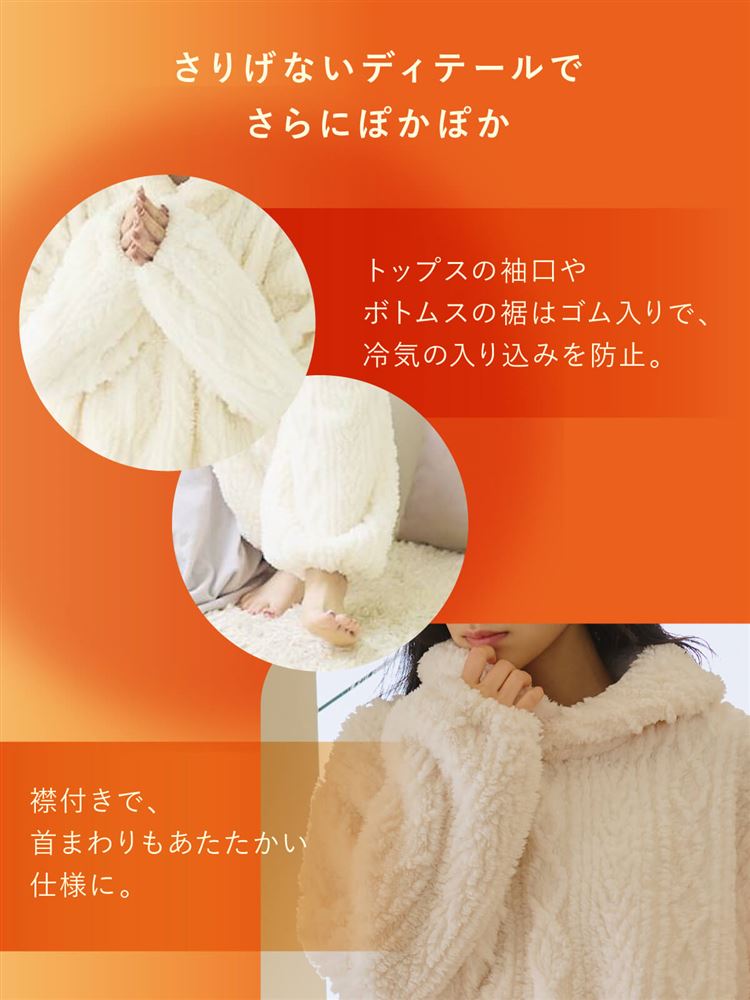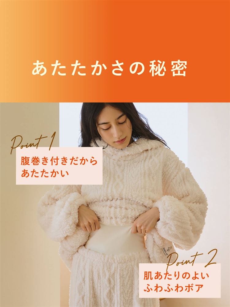 こちらのページは、腹巻き付きボアケーブルパジャマというルームウェア(部屋着)の商品詳細ページです。