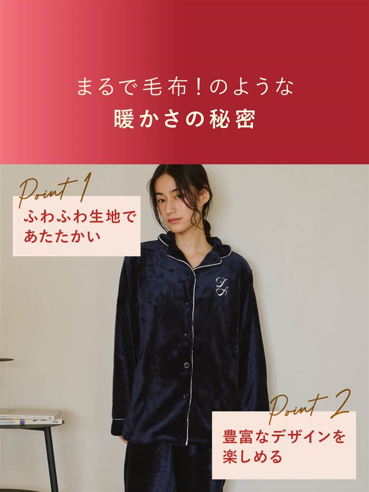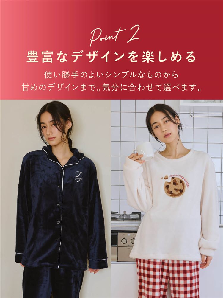 [まるで毛布!のような暖かさ]クッキーさがら刺繍マイクロファイバーパジャマ
