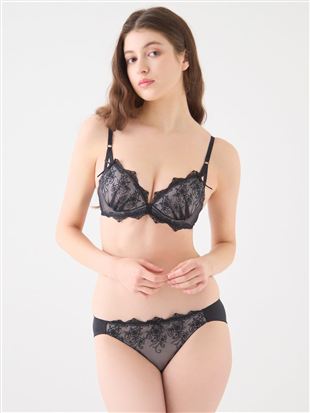 [感激のブラ・寄せる]ノワールショコラブラ&ショーツセット