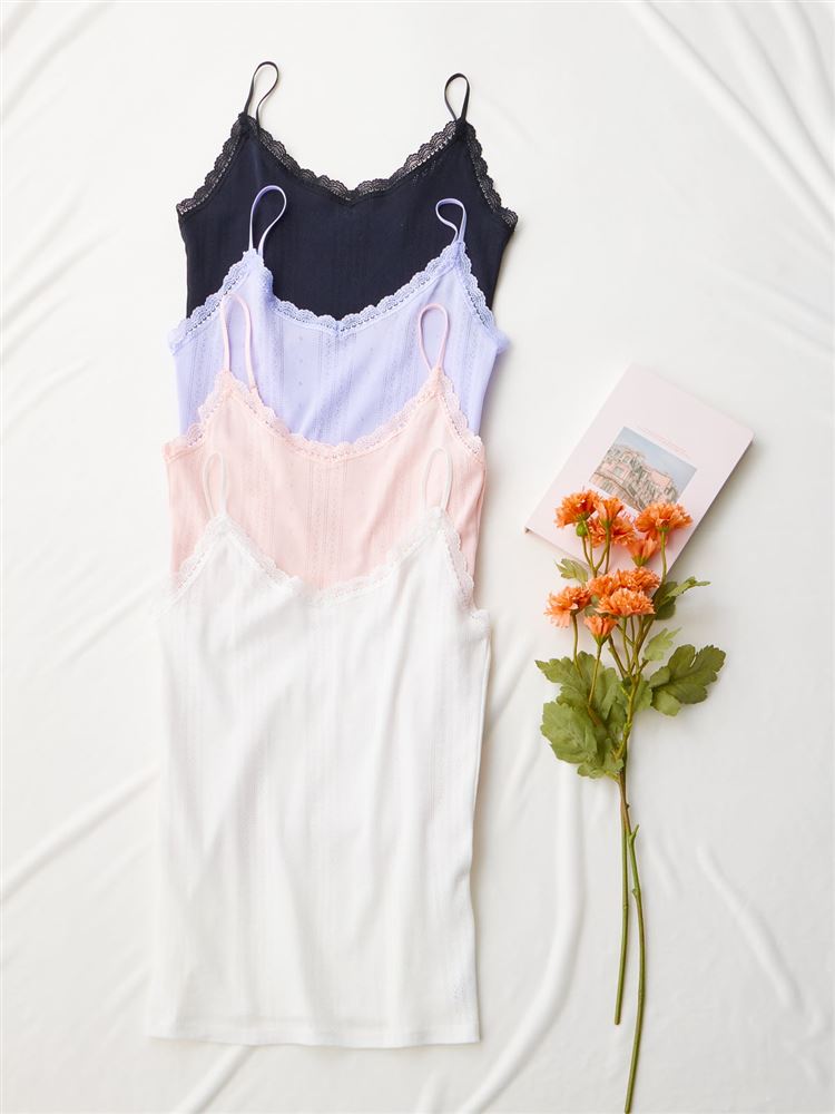 tutuannaオリジナルの商品を扱っている公式通販サイトです。 こちらのページは、綿100%針抜きレース付きキャミソールという下着・インナーの商品詳細ページです。 他にも、多数の下着・インナーに関する商品を扱っています。