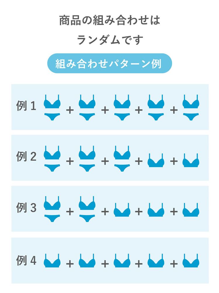 ※ブラ&ショーツセット、または単品ブラの組み合わせはランダムです。どちらか一方のみの場合もございます。内容の交換はいたしかねます。