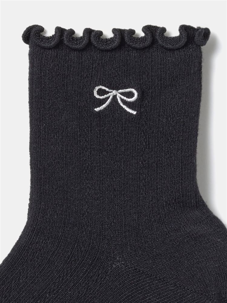 カシミヤ混縄柄くまマフラー刺繍ソックス18cm丈