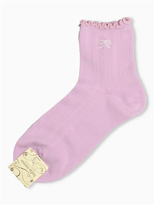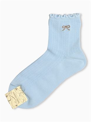 綿混編み上げバックリボンルミー風ソックス13cm丈