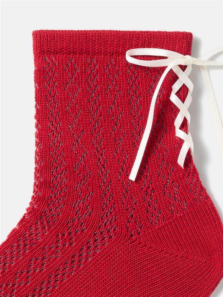 リボン刺繍スパイラル縄柄ソックス13cm丈