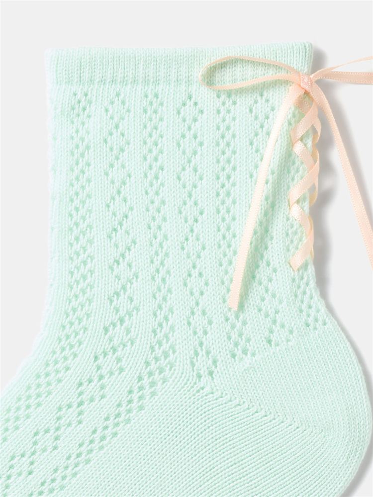 リボン刺繍スパイラル縄柄ソックス13cm丈