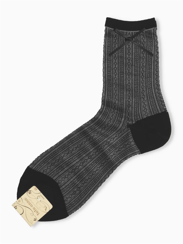綿混リボンくま刺繍タック編みソックス