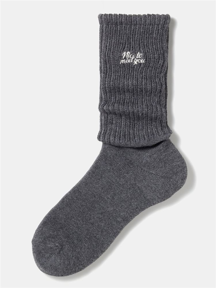 綿混フラワーロゴ刺繍アメリブソックス13cm丈