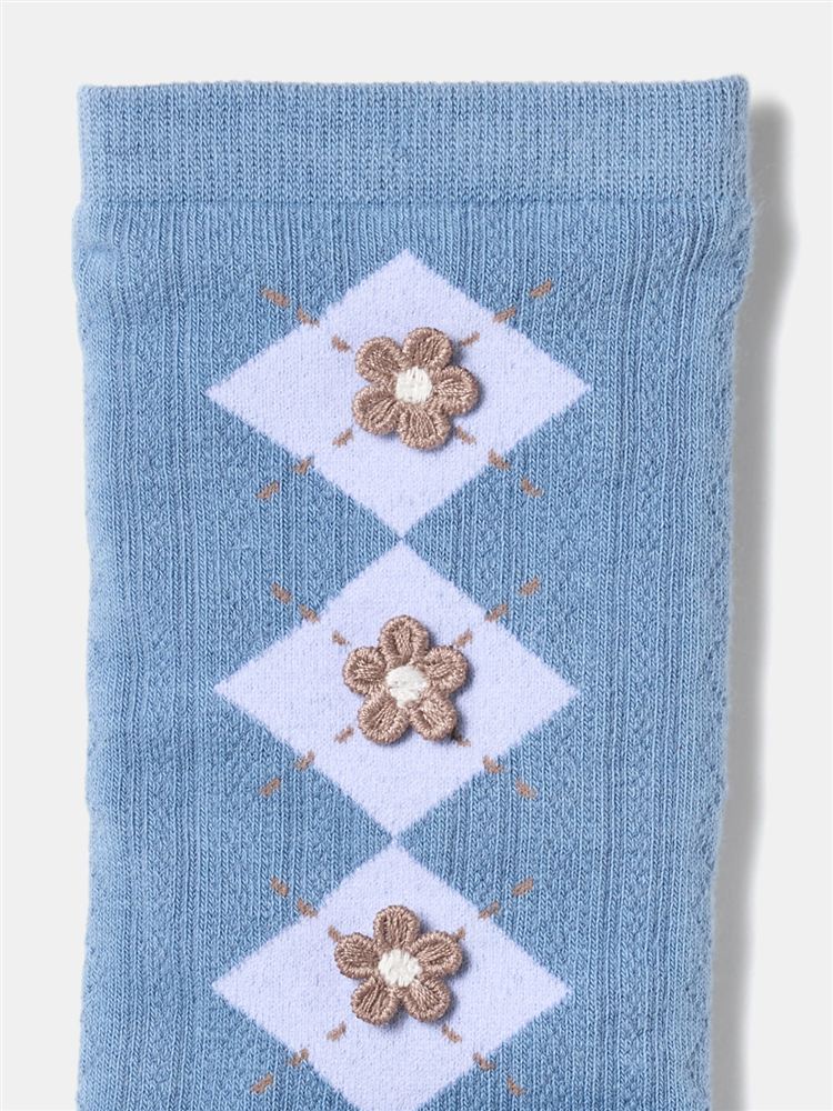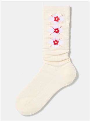 リボン刺繍スパイラル縄柄ソックス13cm丈