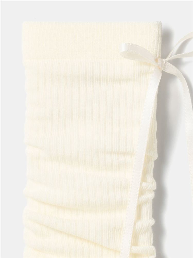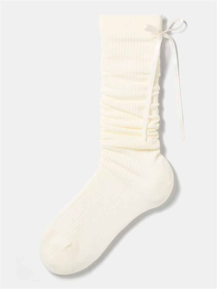 リボン刺繍スパイラル縄柄ソックス13cm丈