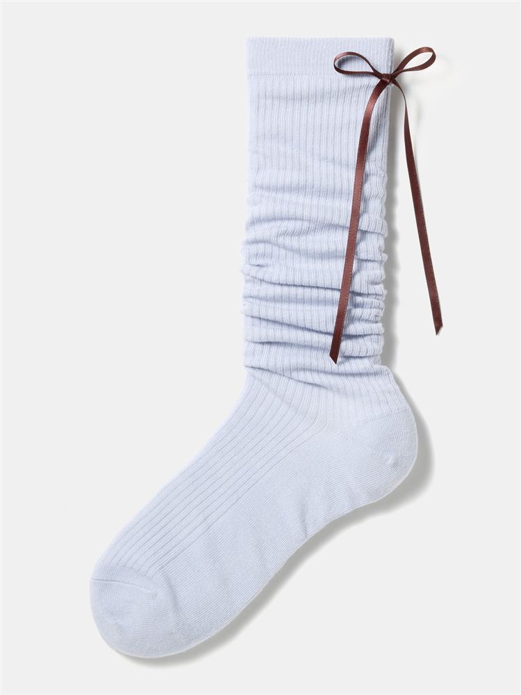 綿混編み上げバックリボンルミー風ソックス13cm丈