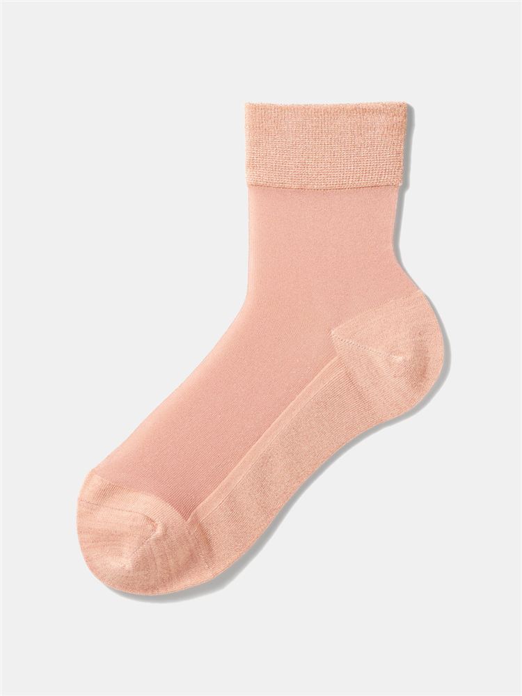足底綿でムレにくい ストッキング風シースルーソックス21cm丈