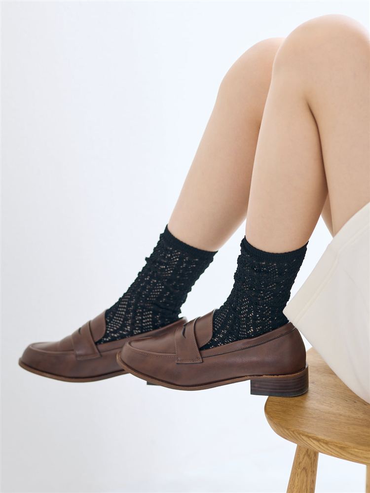 綿混編み上げバックリボンルミー風ソックス13cm丈