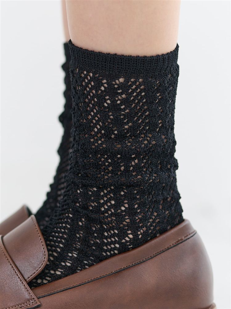 花つた柄シースルーソックス16cm丈