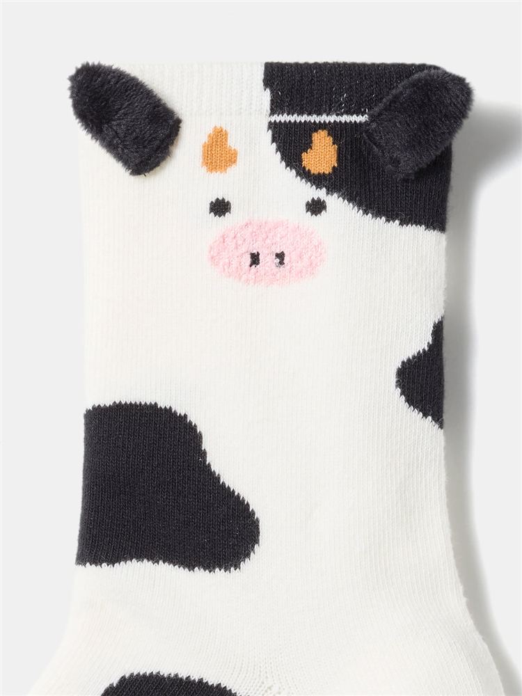 履き口ゆったり綿混マーガレット猫刺繍ソックス14cm丈