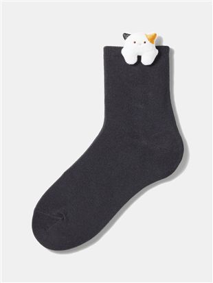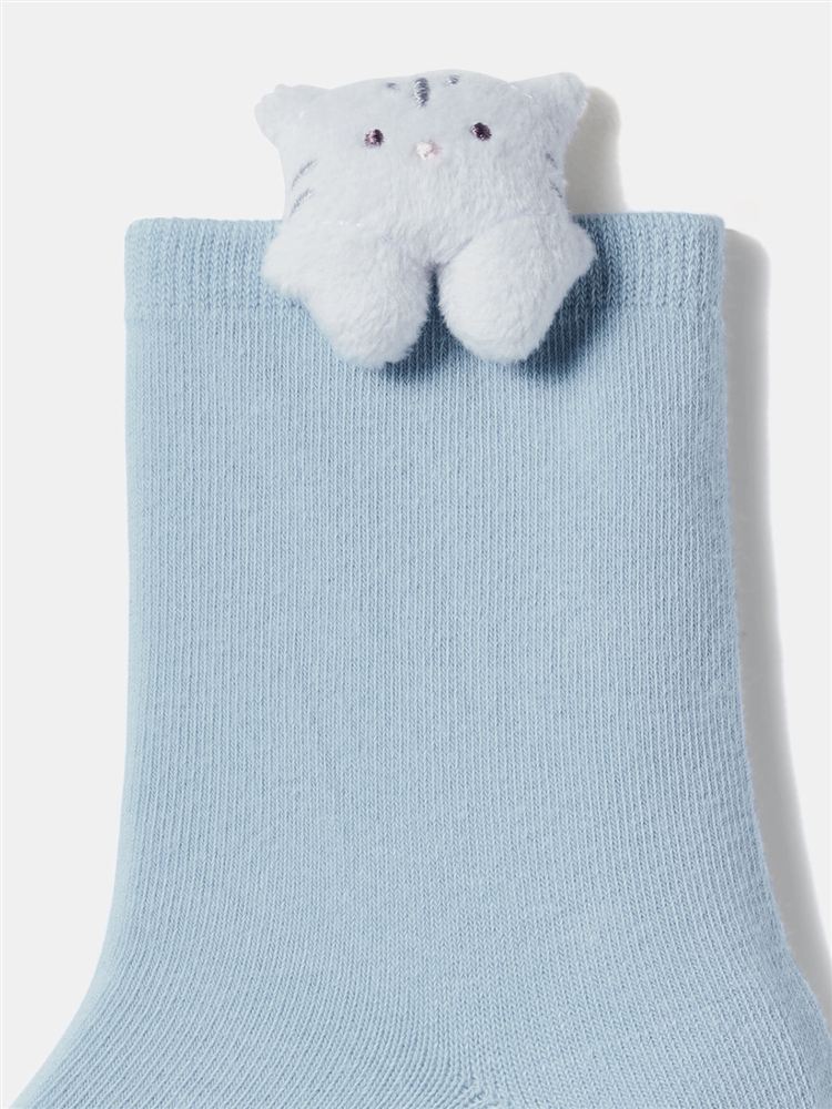 綿混もぐもぐにゃんこマスコット付きソックス16cm丈