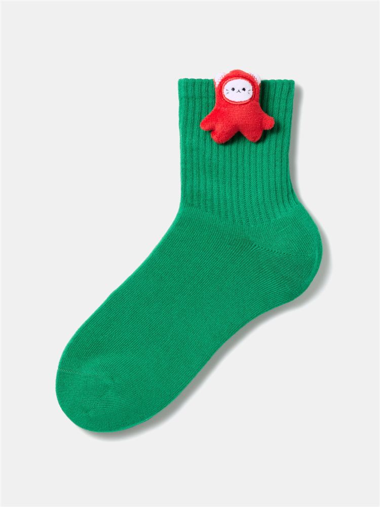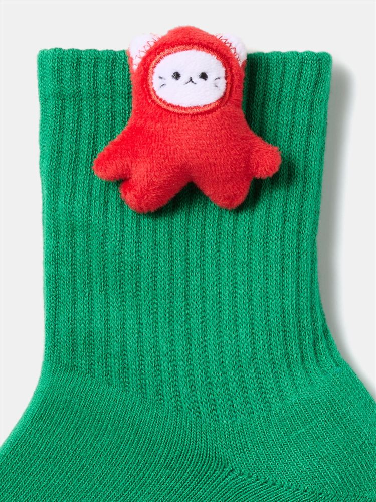 綿混リボンくま刺繍タック編みソックス
