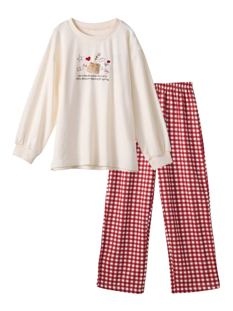 こちらのページは、[温度調整]裏毛くまマスコット付きギンガムチェックパジャマというルームウェア(部屋着)の商品詳細ページです。