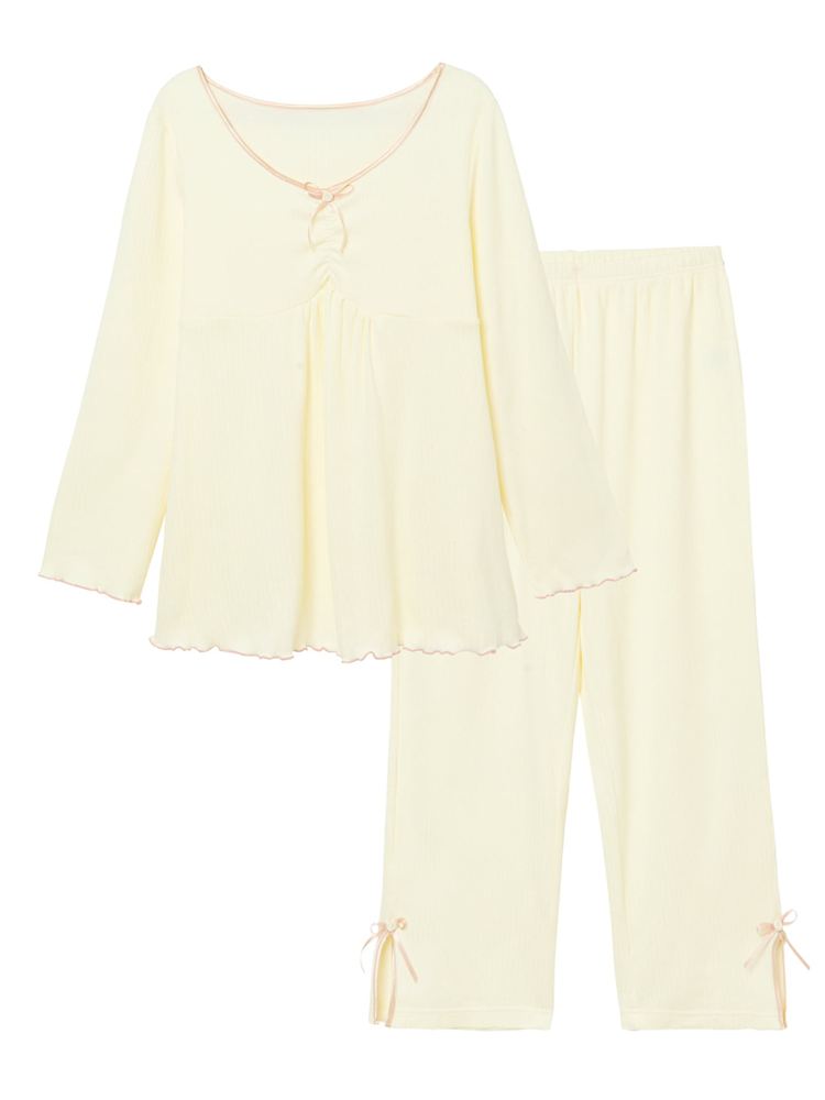 こちらのページは、[温度調整]ローズリボンリブ柄パジャマというルームウェア(部屋着)の商品詳細ページです。