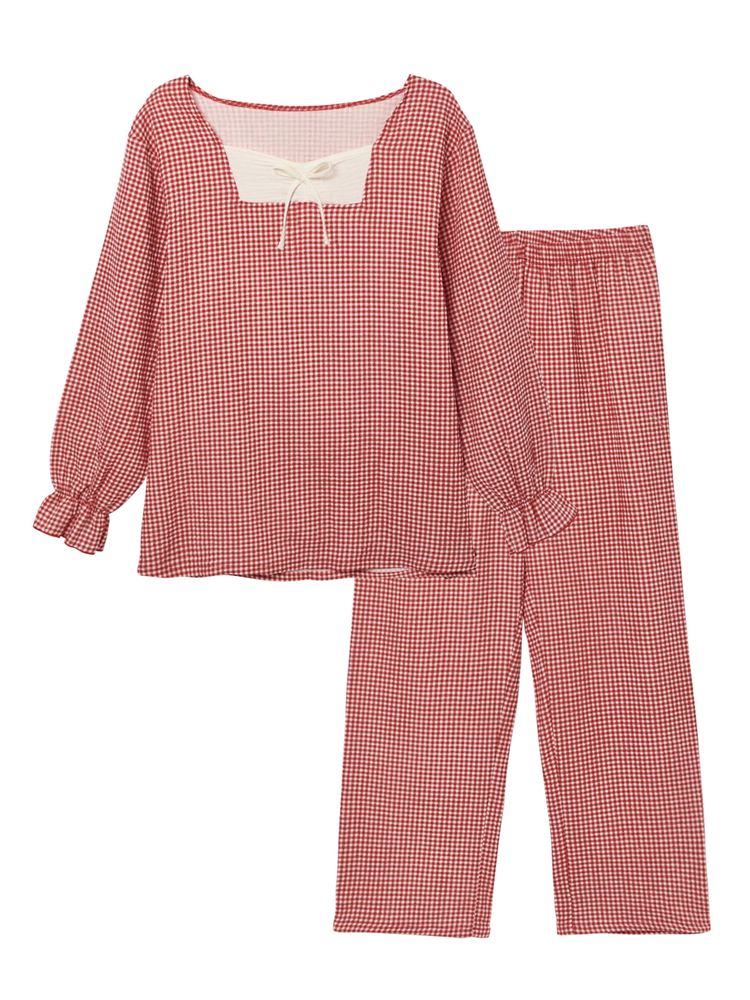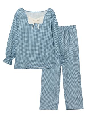 こちらのページは、綿100% ギンガムチェックガーゼパジャマというルームウェア(部屋着)の商品詳細ページです。