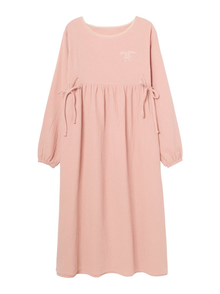 こちらのページは、綿100% ガーゼリボン刺繍ワンピースというルームウェア(部屋着)の商品詳細ページです。