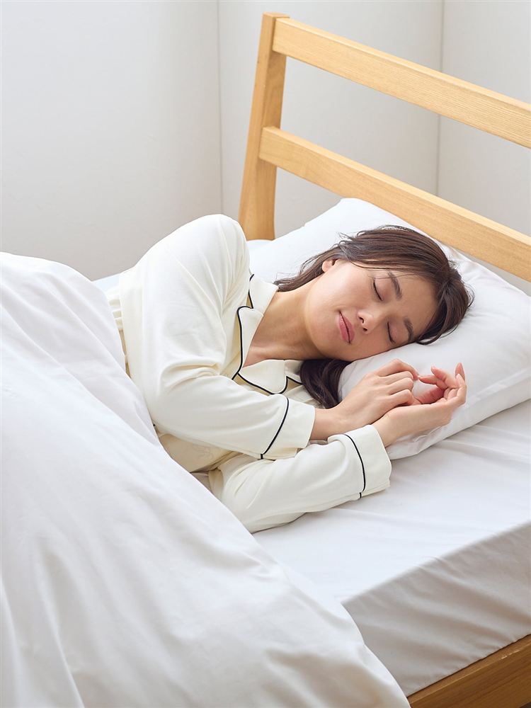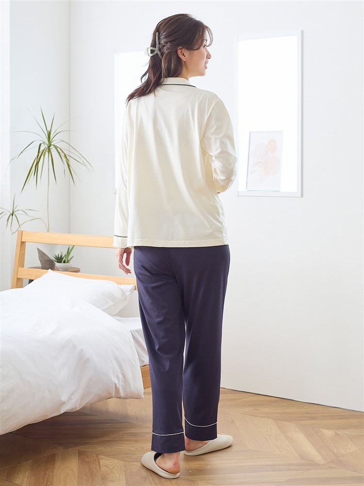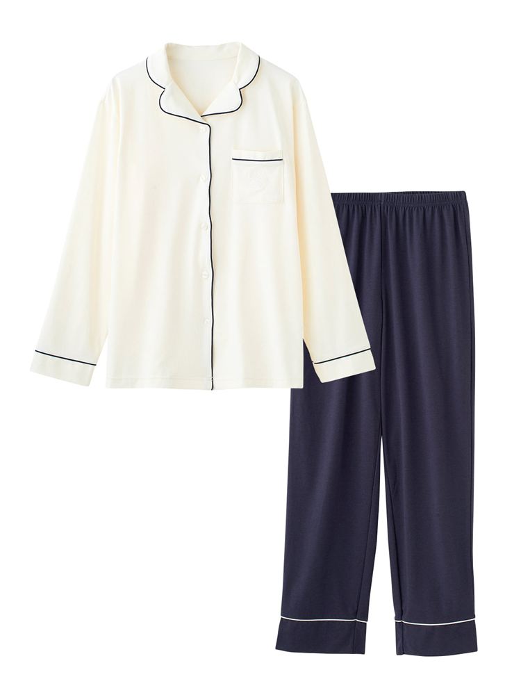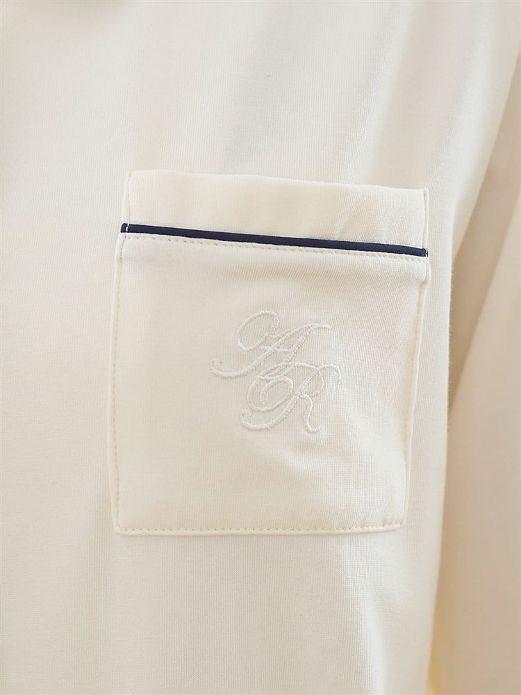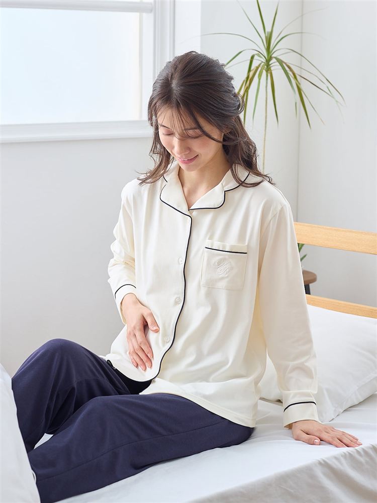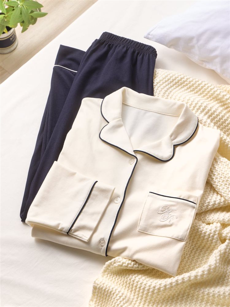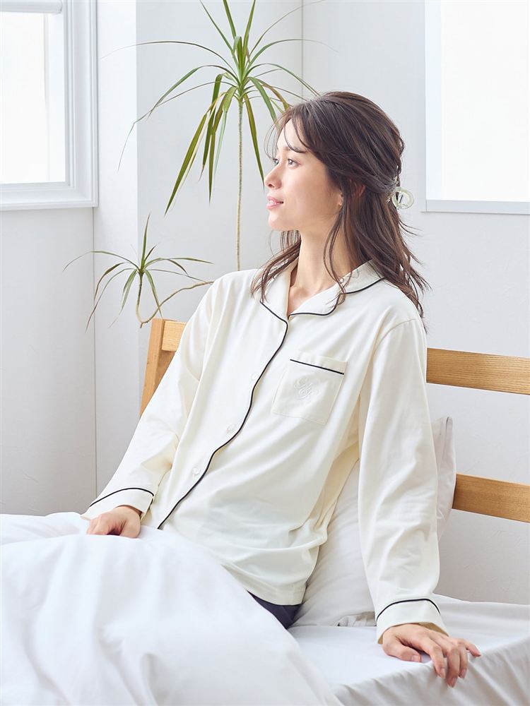 こちらのページは、[リラックス快眠ウェア]ロゴ刺繍前開きパジャマというルームウェア(部屋着)の商品詳細ページです。