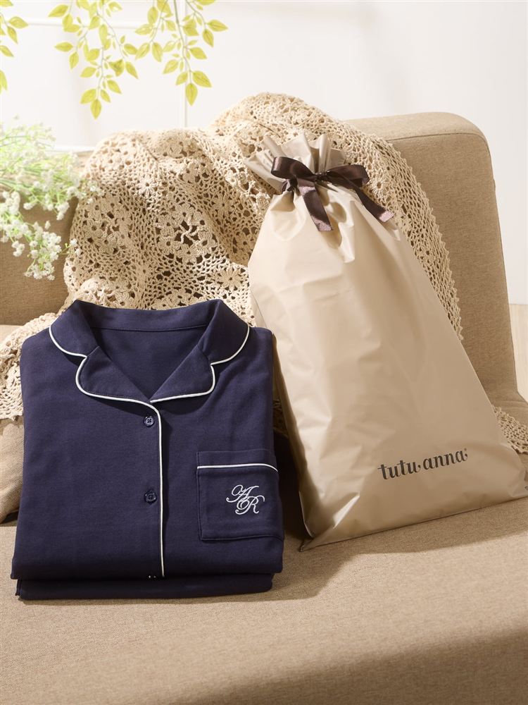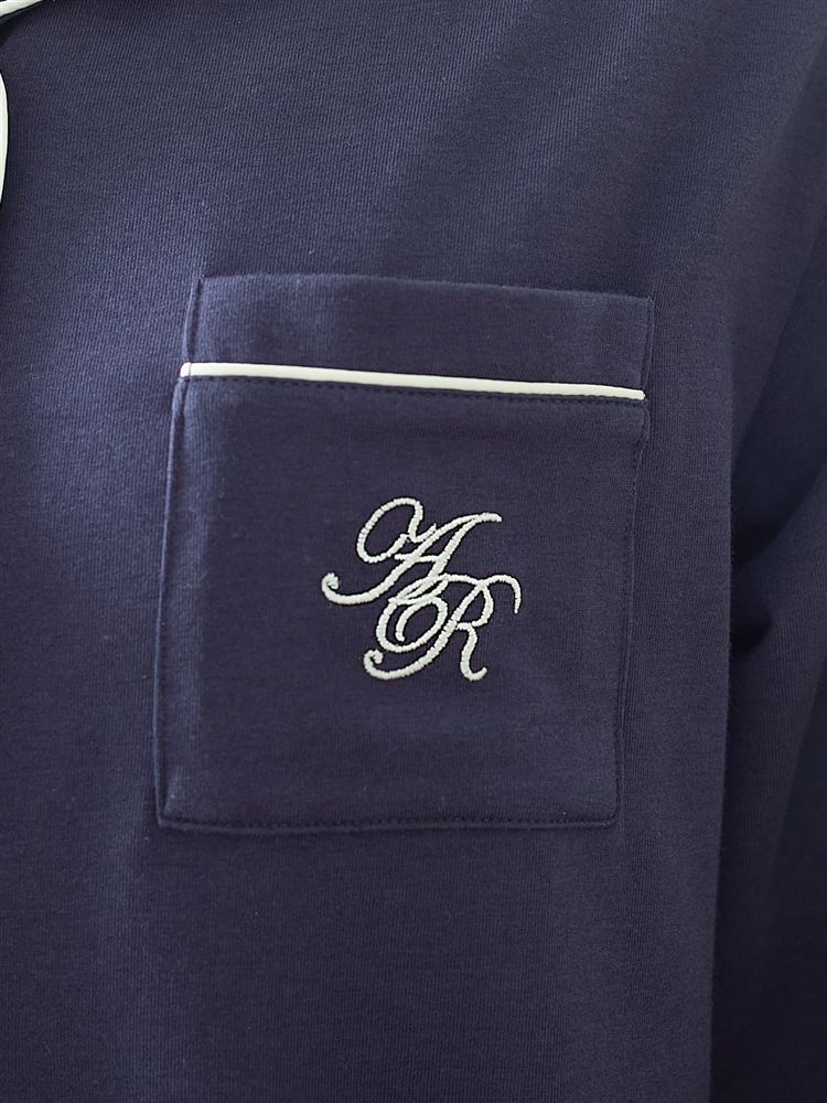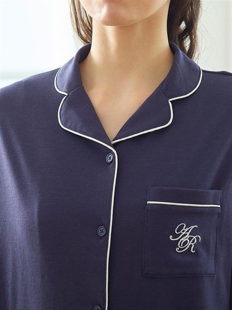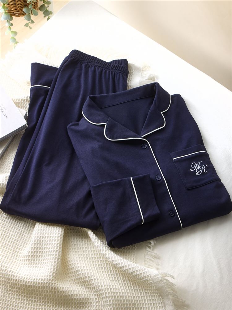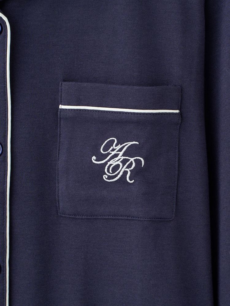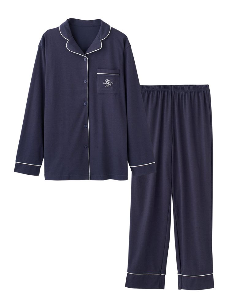 こちらのページは、[リラックス快眠ウェア]ロゴ刺繍前開きパジャマというルームウェア(部屋着)の商品詳細ページです。