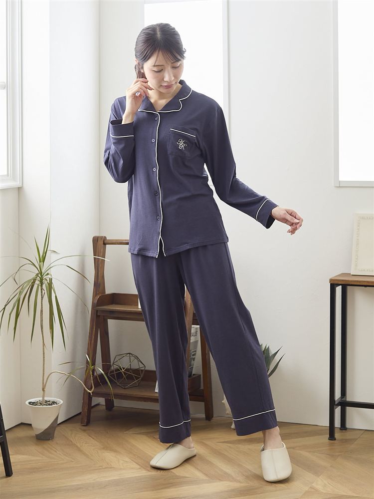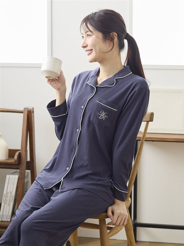 こちらのページは、[リカバリー快眠ウェア]ロゴ刺繍前開きパジャマというルームウェア(部屋着)の商品詳細ページです。