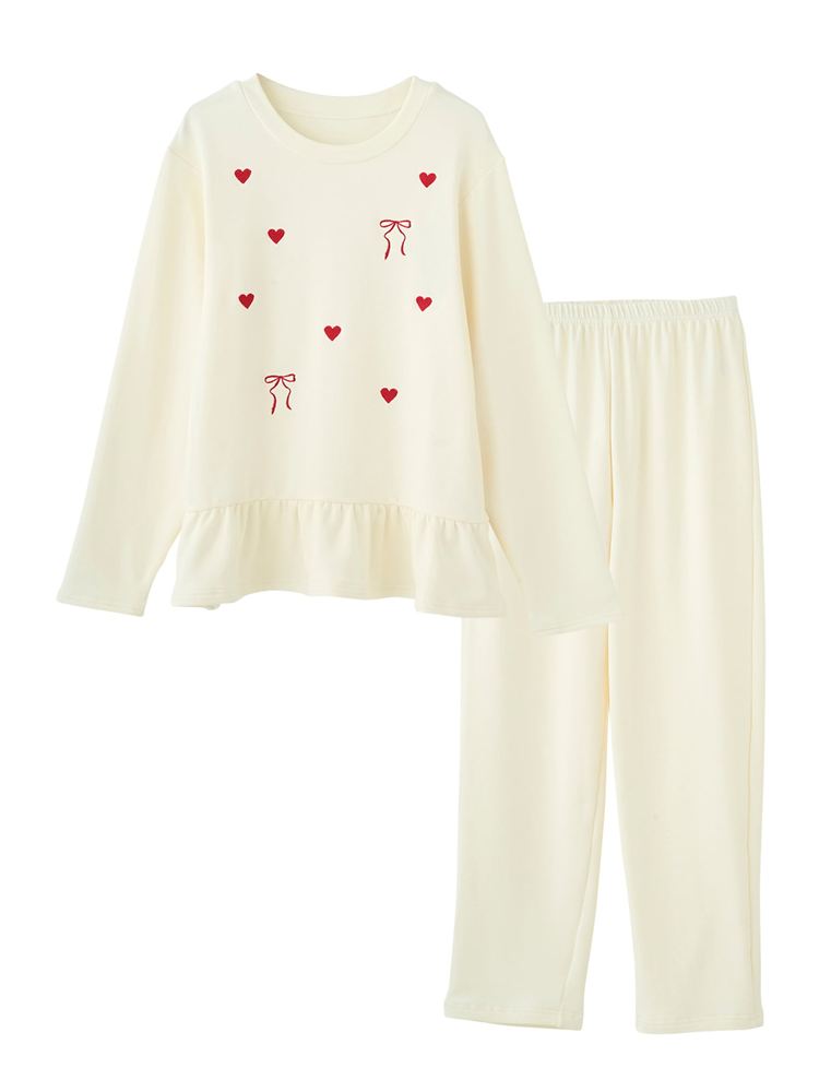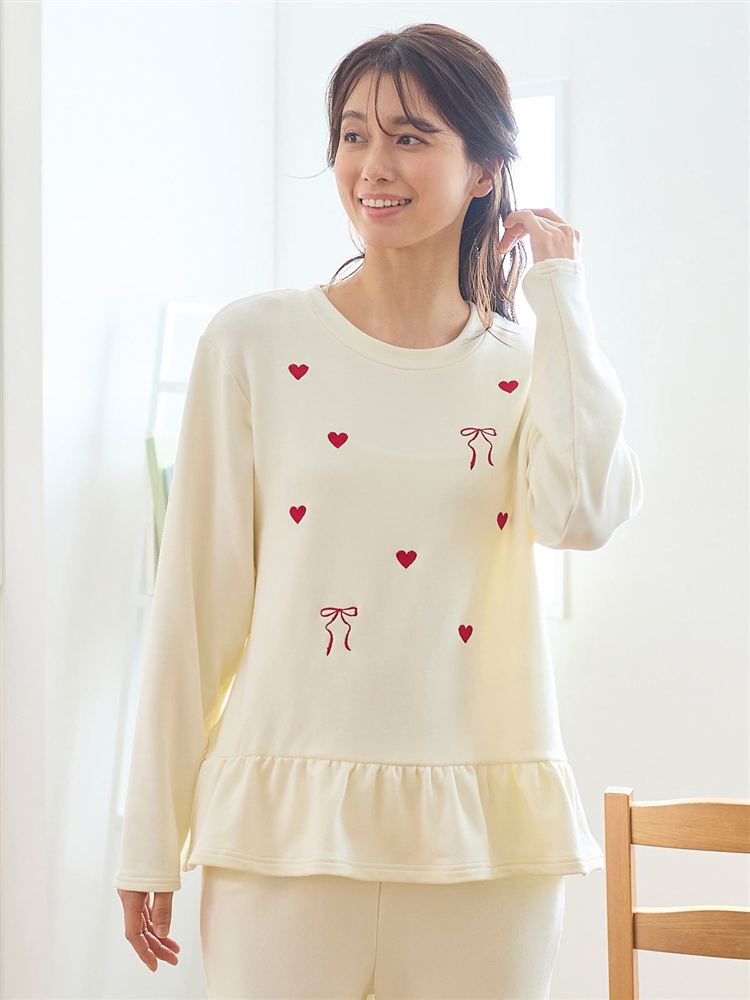 こちらのページは、[快眠ウェア]ハートリボン刺繍パジャマというルームウェア(部屋着)の商品詳細ページです。