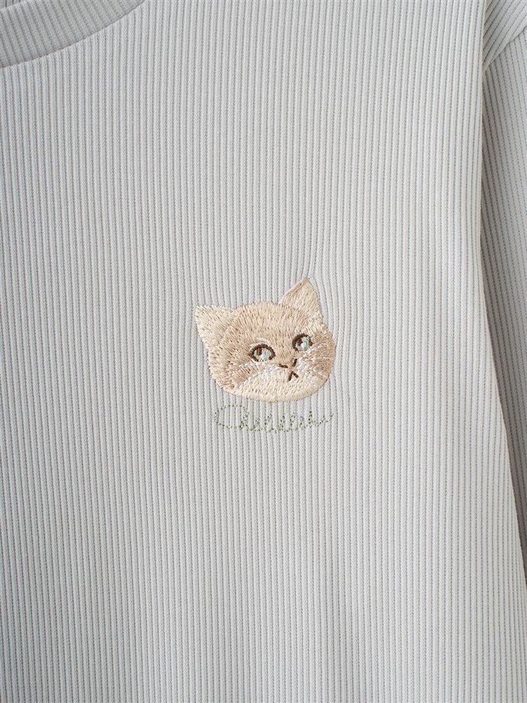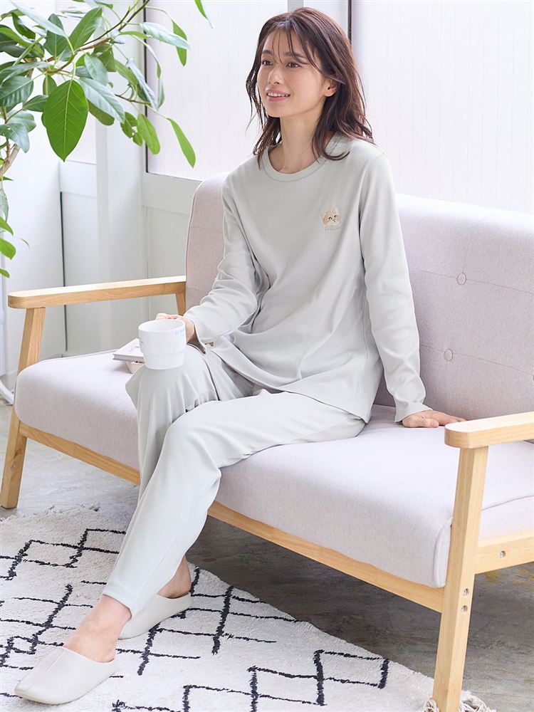 こちらのページは、[快眠ウェア]猫刺繍リブパジャマというルームウェア(部屋着)の商品詳細ページです。