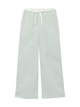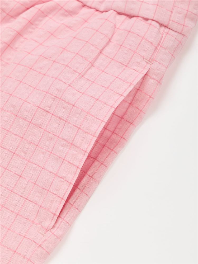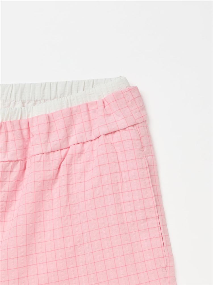 こちらのページは、綿100%ウエスト切り替えグラフチェック柄サッカーロングパンツというルームウェア(部屋着)の商品詳細ページです。