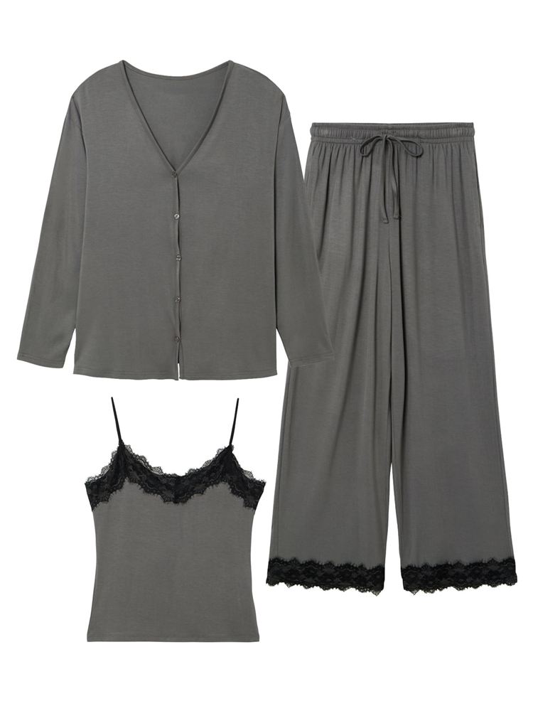こちらのページは、ロングパンツ レースルームウェア3点セットというルームウェア(部屋着)の商品詳細ページです。