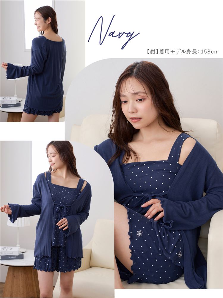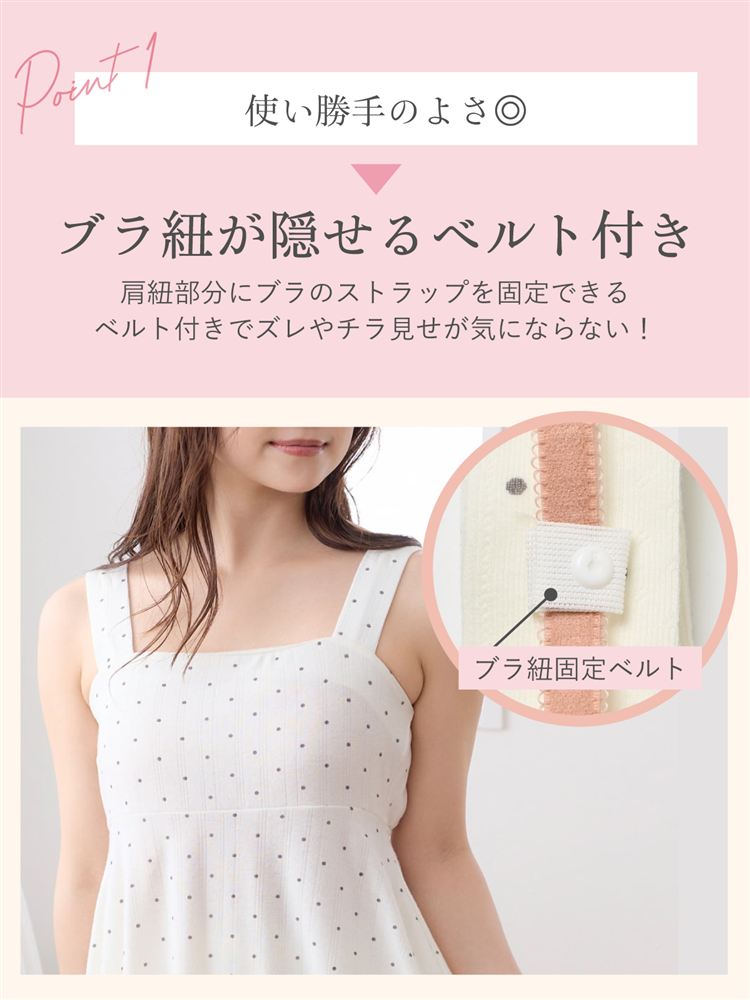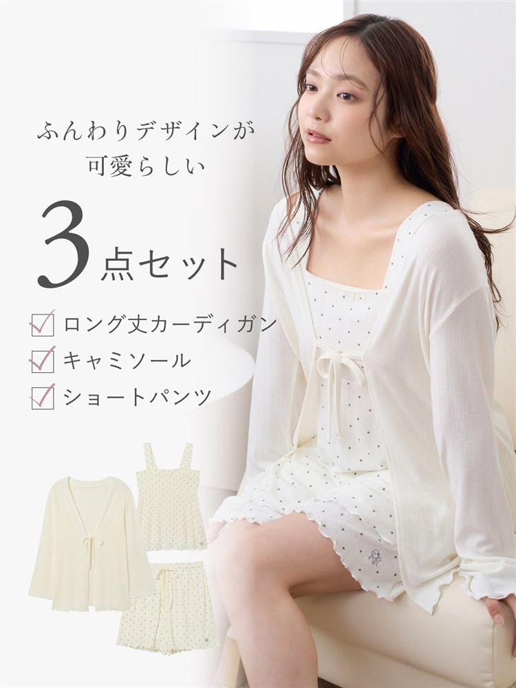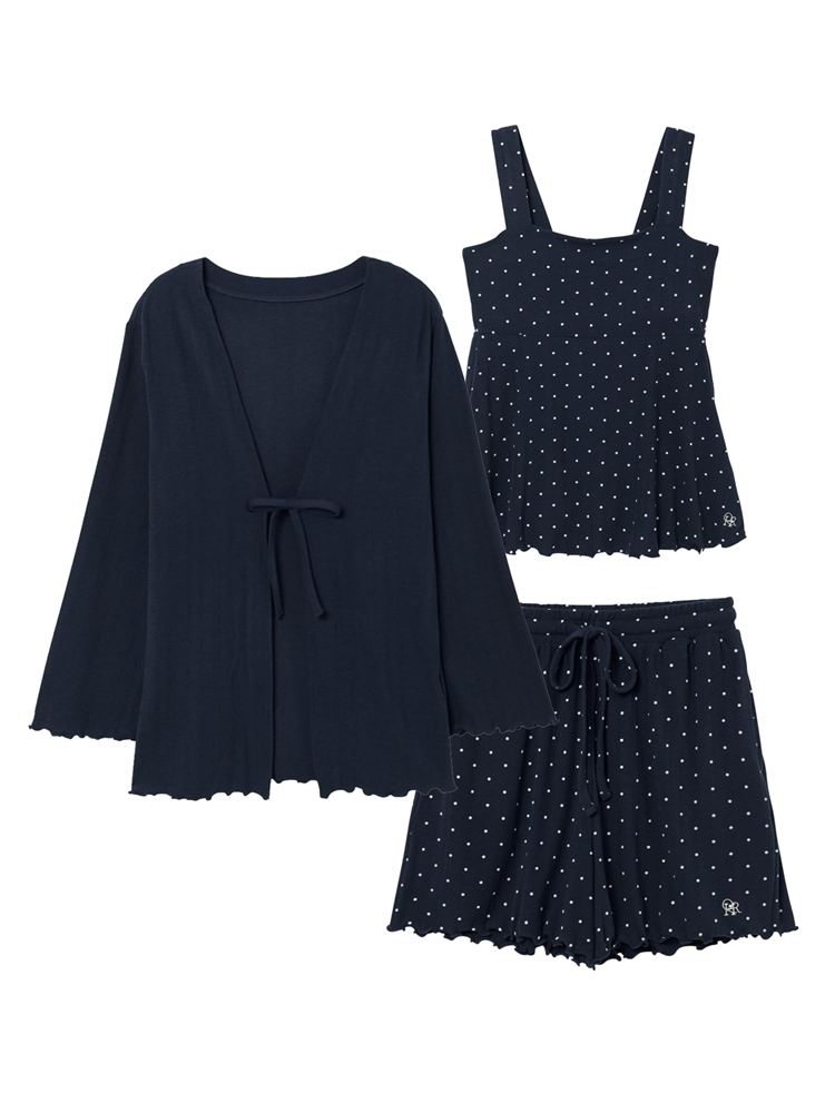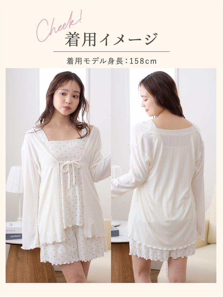 こちらのページは、【ブラ紐が隠せる】ショートパンツ ドット柄ルームウェア3点セットというルームウェア(部屋着)の商品詳細ページです。